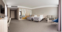3 pokoje 1 osobowe, 56 pokoi dwuosobowych typu Twin w tym 1 przeznaczony dla osób niepełnosprawnych, 2 pokoje 3 osobowe, 4 Apartamenty oraz 6 pokoi typu Comfort. Dodatkowo, Hotel ma możliwość zaaranżowania pokoi rodzinnych. Pokoje w części zachodniej są w pełni klimatyzowane z łazienką i TV. Większość pokoi posiada balkon, taras lub wydzielone wyjście na zewnątrz. W cenę każdego pokoju jest wliczone śniadanie serwowane w formie bufetu, możliwość korzystania z sauny, Internet światłowodowy, a także parking.
