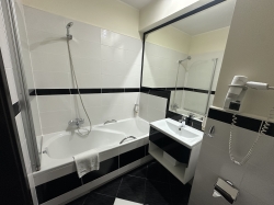 Klasycznie urządzone pokoje w Hotelu Business Faltom Gdynia odznaczają się eleganckim wystrojem, a ich wnętrza są utrzymane w bieli, czerni oraz w ciemnych odcieniach brązu. Każdy pokój wyposażony jest w 32-calowy telewizor LCD, biurko z krzesłem i lodówkę. W pokojach znajduje się łazienka z wanną oraz suszarką do włosów.