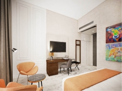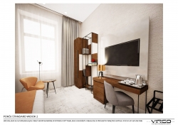 Hotel oferuje 82, nowocześnie urządzone pokoje standard oraz 7 apartamentów o powierzchni około 50 mkw. Nasze pokoje wyposażone są w duże łóżka, których wygoda zapewni spokojny sen. Standardowe wyposażenie obejmuje: klimatyzację, duży telewizor, bezpłatny internet Wi-Fi oraz zestaw do parzenia kawy i herbaty oraz wodę mineralną. Ponadto do dyspozycji gości oddajemy sejf i minibar. Łazienki wyposażone są w kabiny prysznicowe, a dodatkowo dla większego komfortu w każdej łazience znajduje się suszarka do włosów oraz zestaw kosmetyków.